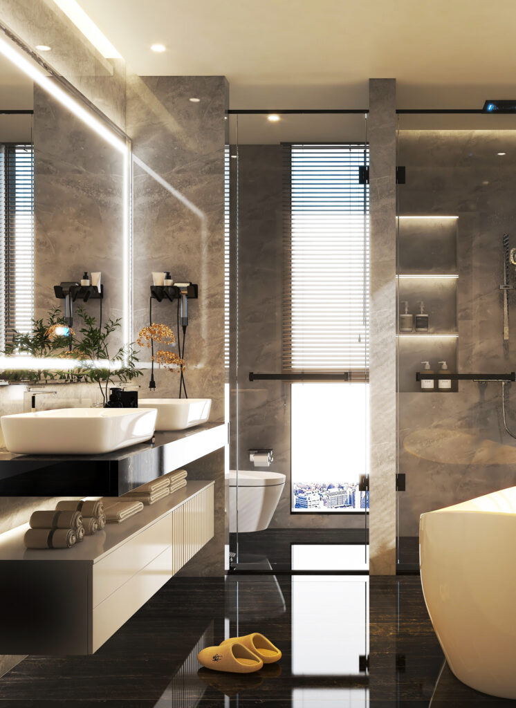 CONCEPTS ARE TRANSLATED INTO DETAILED FLOOR PLANS, TECHNICAL DRAWINGS, AND 3D RENDERINGS, WITH MATERIALS AND FINISHES SPECIFIED FOR GREATER CLARITY.